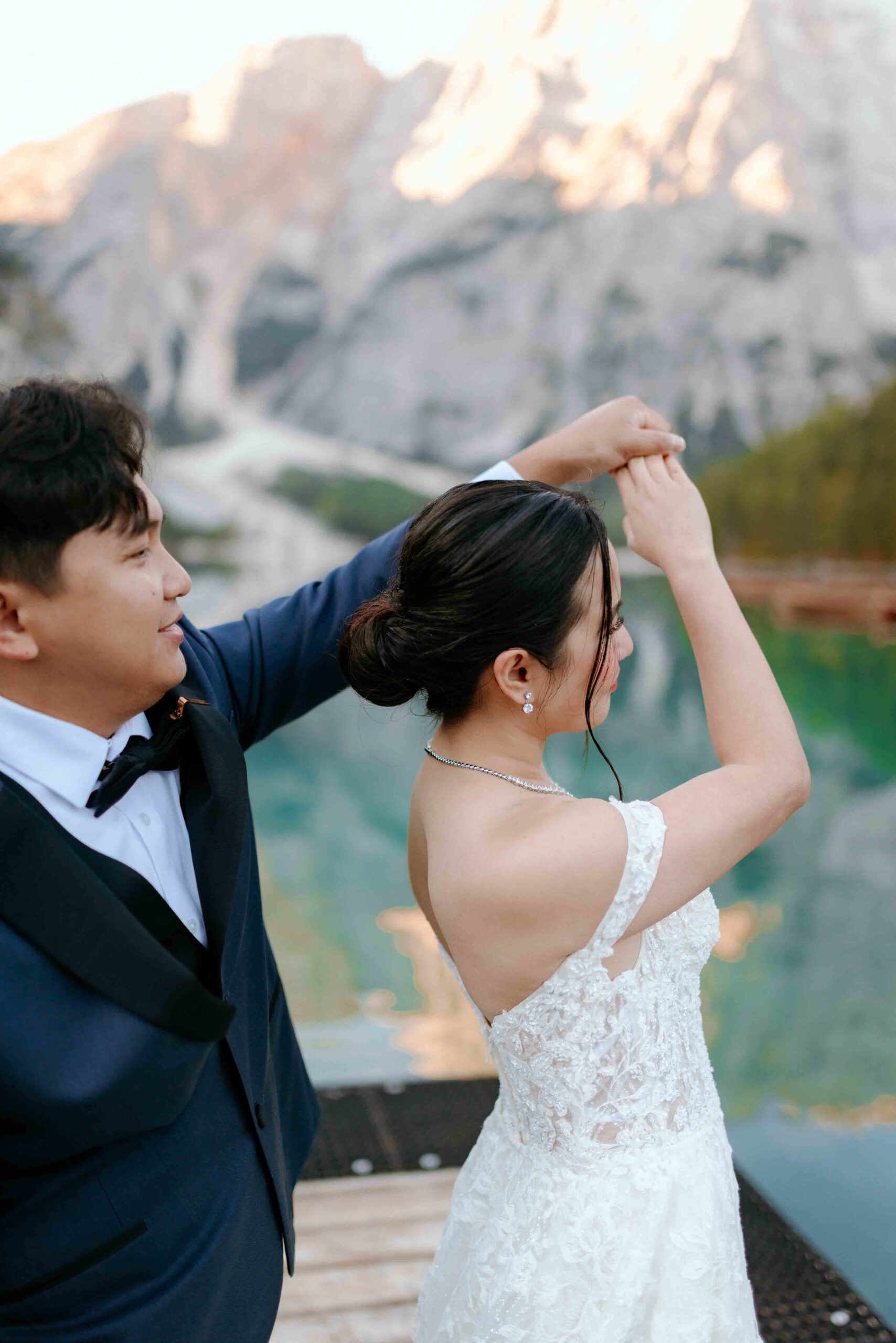 Heiraten mit Bergpanorama in den Dolomiten am Pragser Wildsee